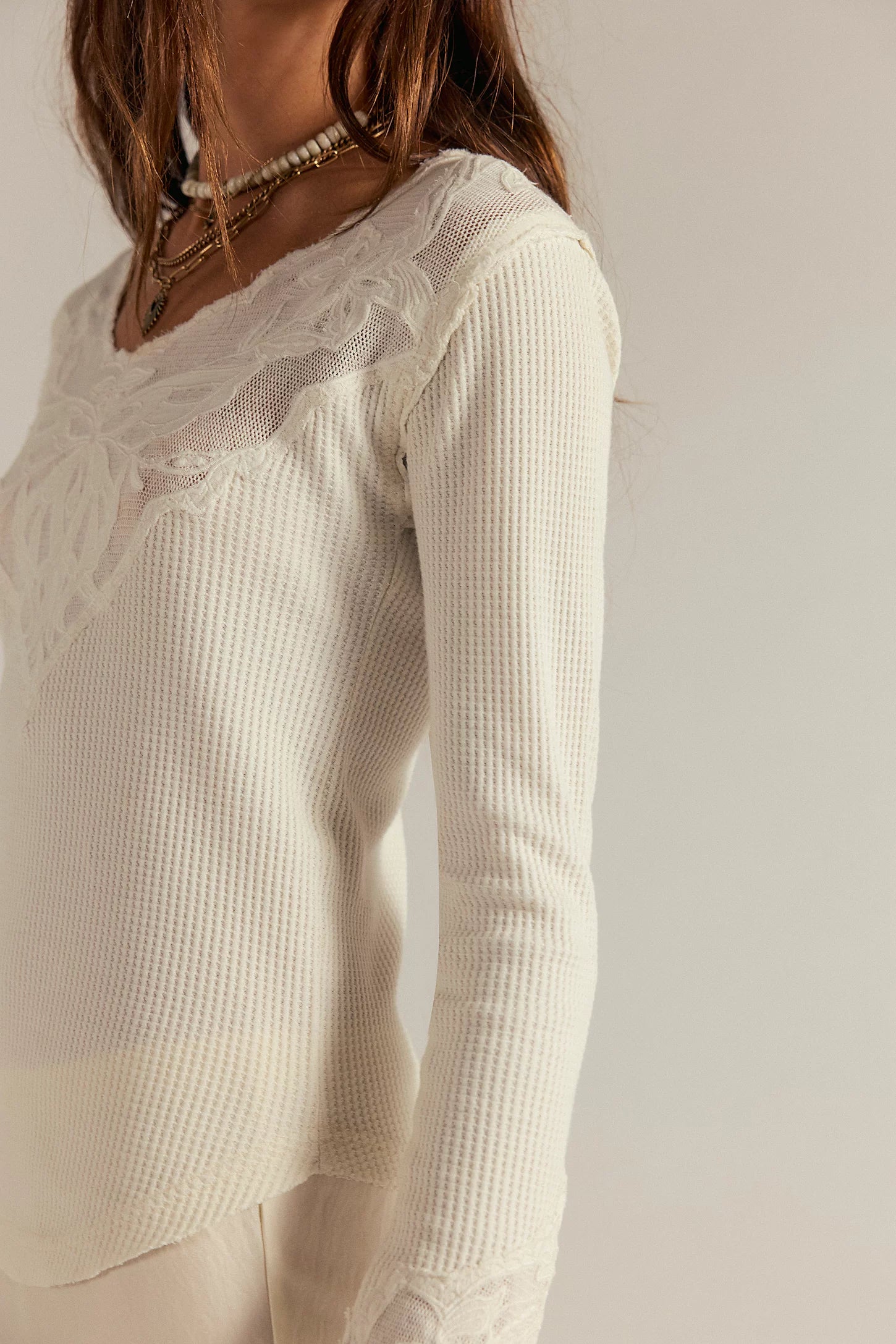 Elevate your everyday with this Free People essential—a long-sleeve thermal that's anything but basic. Delicate embroidered mesh adorns the chest and cuffs, adding an unexpected flourish that transforms a wardrobe staple into something distinctly yours. It's the kind of thoughtful detail that makes you feel like you've discovered something rare.