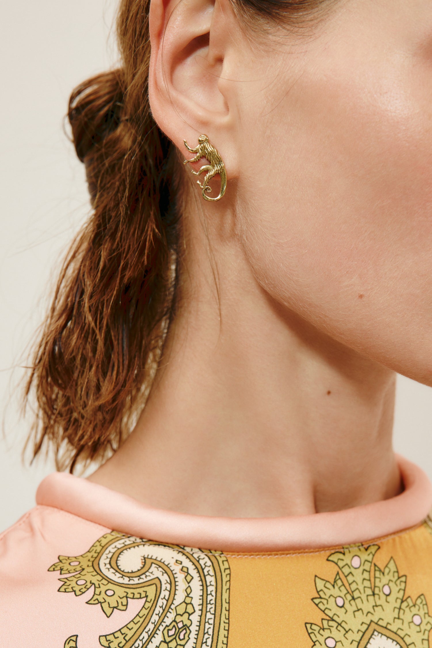 | Textured monkey motif studs Branding on back of money tail Handmade in Indonesia |