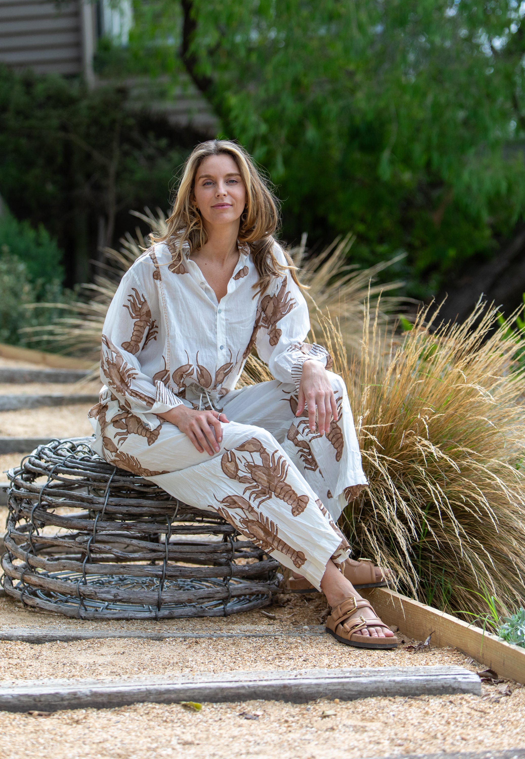 Celebrate the return of our iconic Big Lobster design this Resort 2025 season. Crafted by skilled artisans using traditional hand block printing and natural dyes on luxuriously soft organic cotton, this vibrant piece brings instant personality to your warm-weather rotation. The relaxed silhouette features a flattering V-neckline and effortless sleeves, making it endlessly versatile—layer it over swimmers, pair with shorts, or style alongside our matching sarong. From sunrise beach strolls to sunset cocktails, this is the colourful companion your wardrobe's been waiting for.