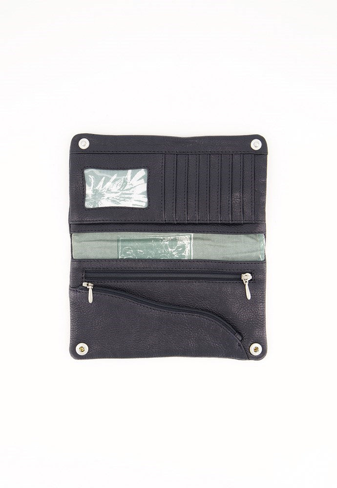 Featuring a lino cut sun embossing, this streamlined wallet has a functional design that ensures there’s a place for everything.