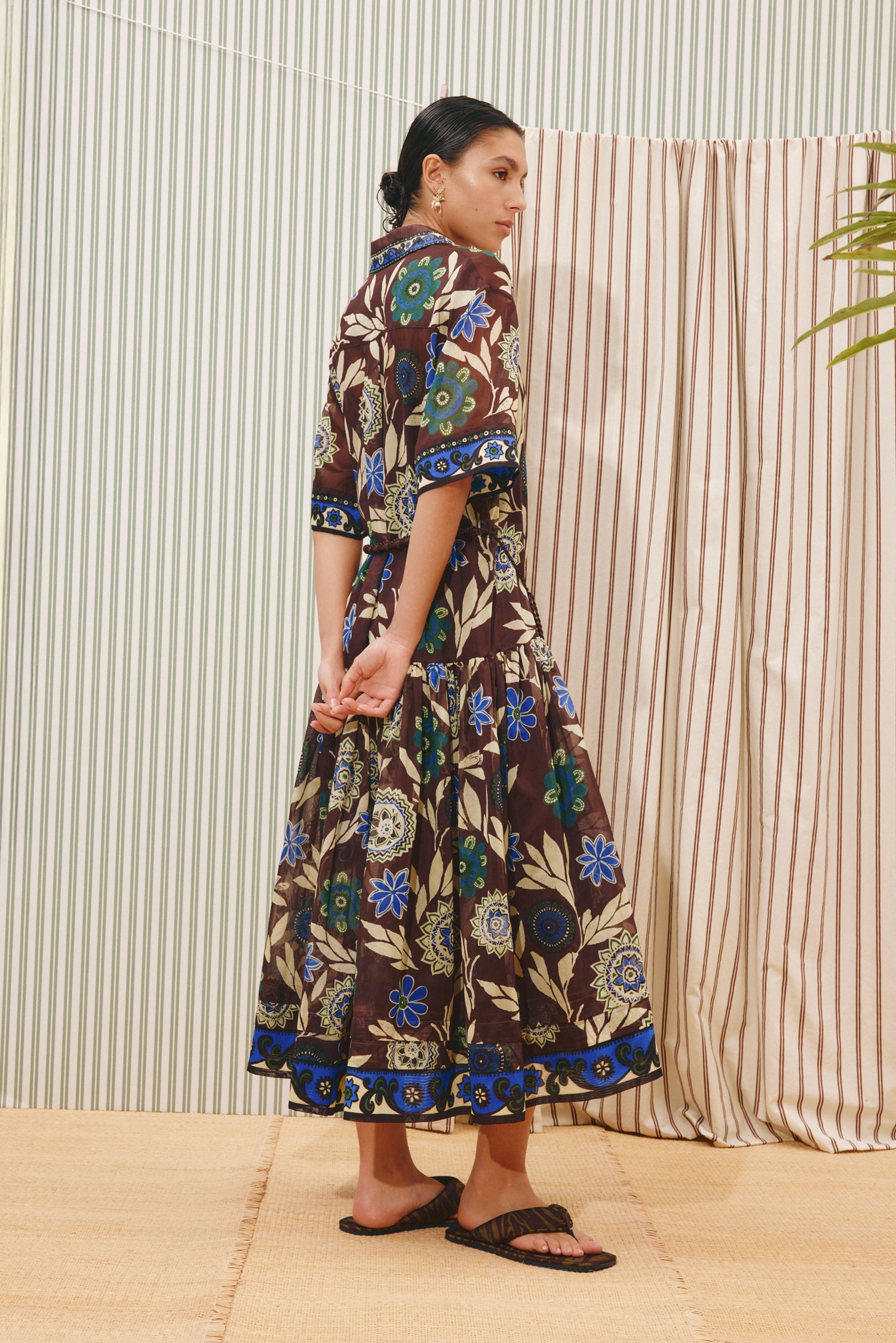 Relaxed drop waist shirtdress silhouette