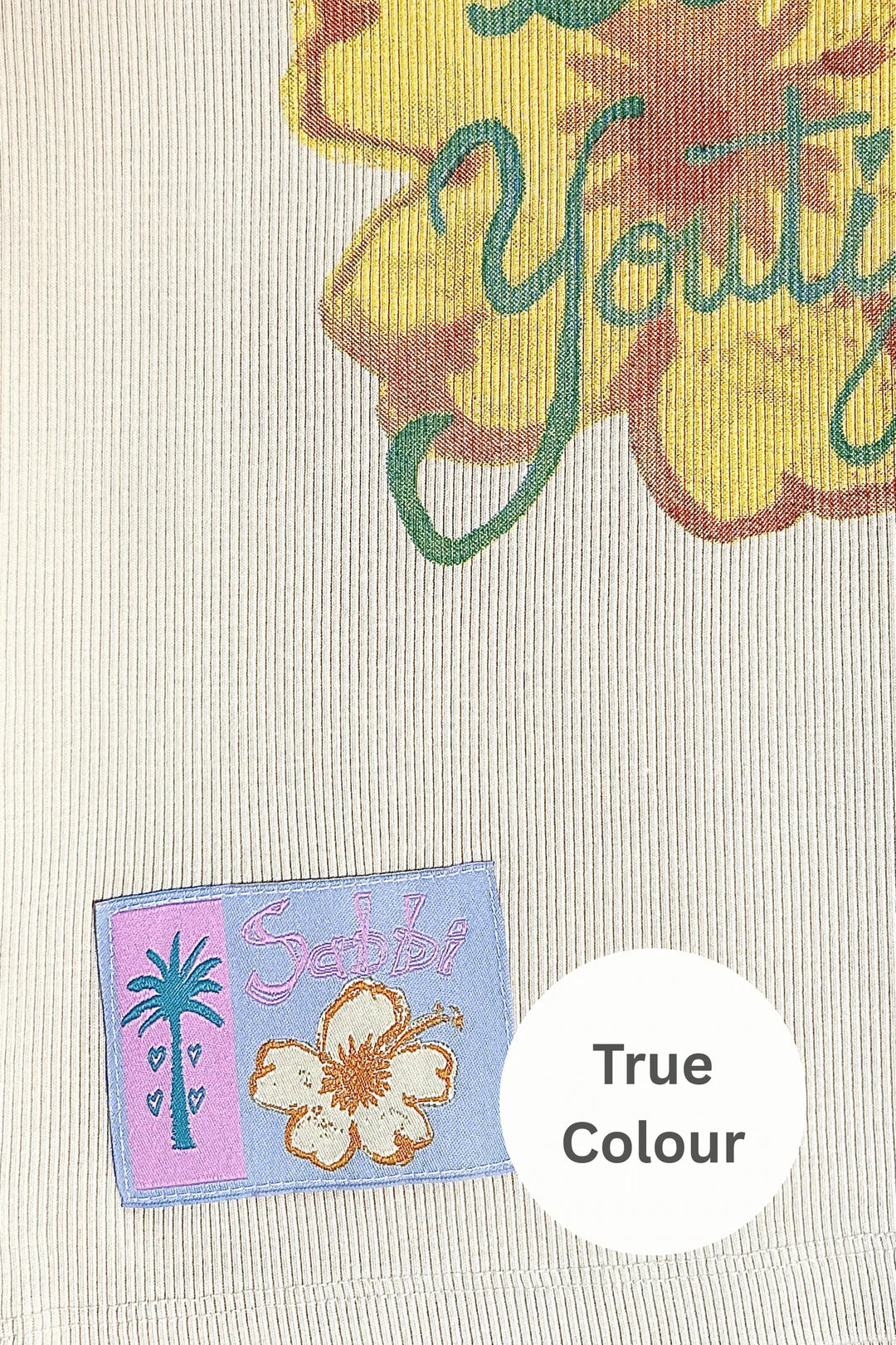 Embrace your inner glow with the Sabbi Be Youthful Tank—a fitted, cropped essential that celebrates self-love with style. Featuring hand-drawn hibiscus artwork inspired by tropical island vibes and ocean energy, this tank delivers coastal charm with a cheeky attitude. The playful design sits front and centre, reminding you to shine unapologetically. Versatile enough for golden-hour adventures, beachside moments, or paired with your favourite denim and prints, this feel-good piece is made for those who wear confidence loudly and love themselves fiercely.
