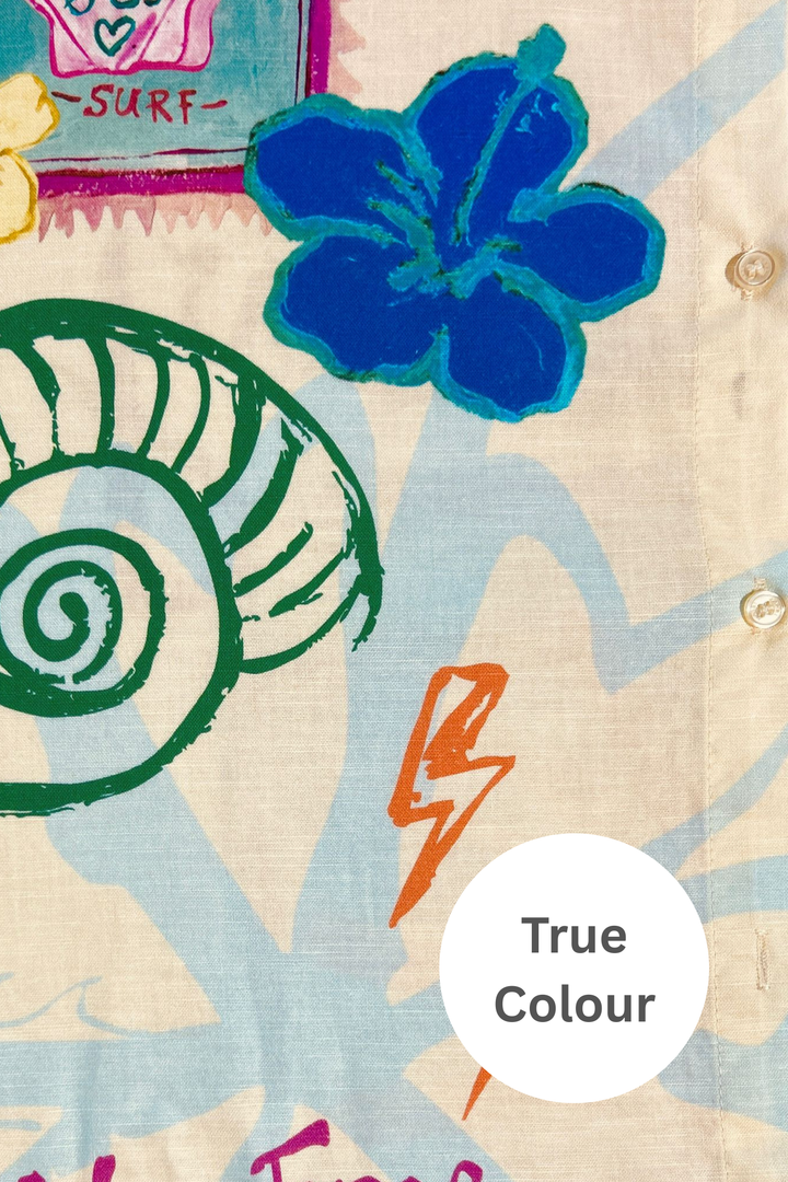 Dive into the Sabbi spirit with The Don Julio Shirt, a piece that captures coastal wanderlust in every wear. This long-sleeve button-up showcases hand-drawn Seas The Day artwork—mermaids, shells, suns and whimsical scribbles—that gets better the more you live in it. The relaxed, loose cut and lightweight, breathable fabric make it endlessly versatile: wear it open, softly buttoned, or layered as the day unfolds. Available in two distinct colourways, each with its own seaside personality. A shirt that feels like a cherished souvenir you'll reach for again and again.HUGE sizing.