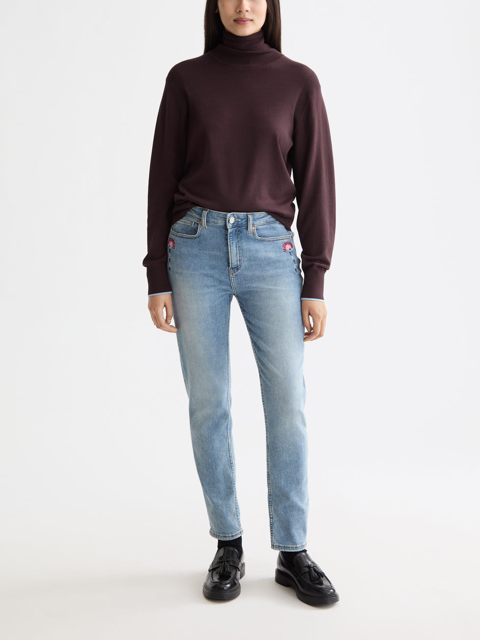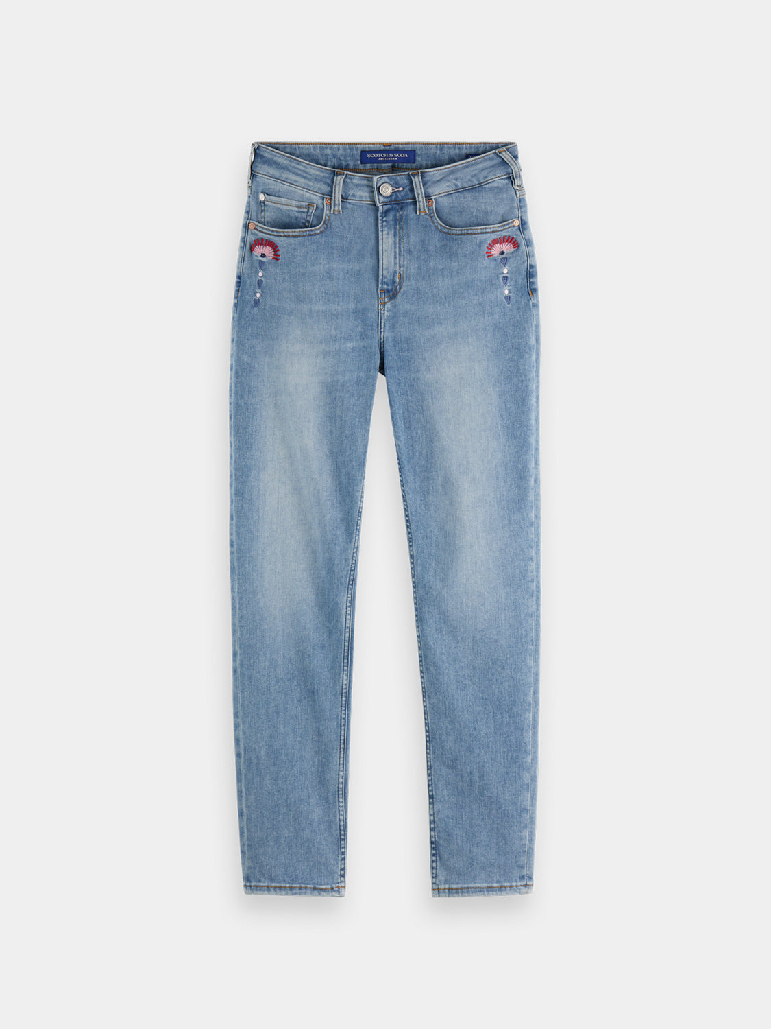 Meet your new denim obsession: the Scotch & Soda High Five. Crafted from stretch fabric that moves with you, these jeans deliver comfort without compromise. The high-rise waist pairs beautifully with a sleek, tapered silhouette that hugs your legs and finishes just above the ankle. Dressed in a timeless mid-blue wash and adorned with playful embroidered accents, they're finished with classic five-pocket construction and a trusty zip fly. Effortless style that actually feels as good as it looks.